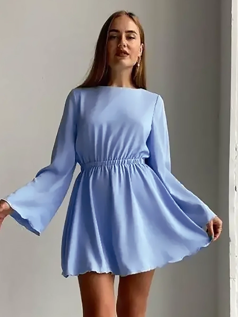 Вільне красиве коктейльне плаття з відкритою спинкою, виконане з якісної костюмної тканини. Довжина вище колін. Рукав вільний, талія на резинці